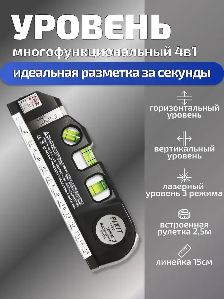Многофункциональный лазерный уровень с линейкой и рулеткой 2,5 м Laser Level Pro 3
