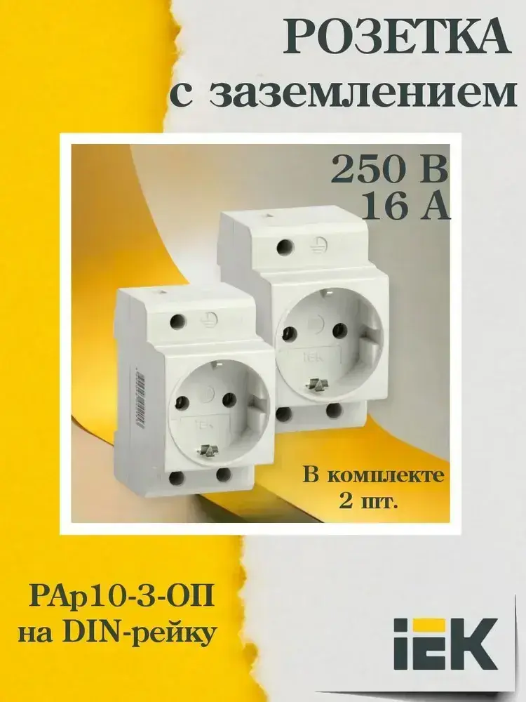 (MRD10-16-2, КОМПЛЕКТ 2 шт.) Розетка силовая РАр10-3-ОП с заземл. на DIN-рейку IEK 1065413058.VE24RU1