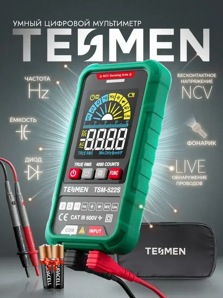 Мультиметр Цифровой автоматический с прозвонкой TESMEN TSM-522S 4000 отсчетов с функцией измерения емкости, диода и частоты