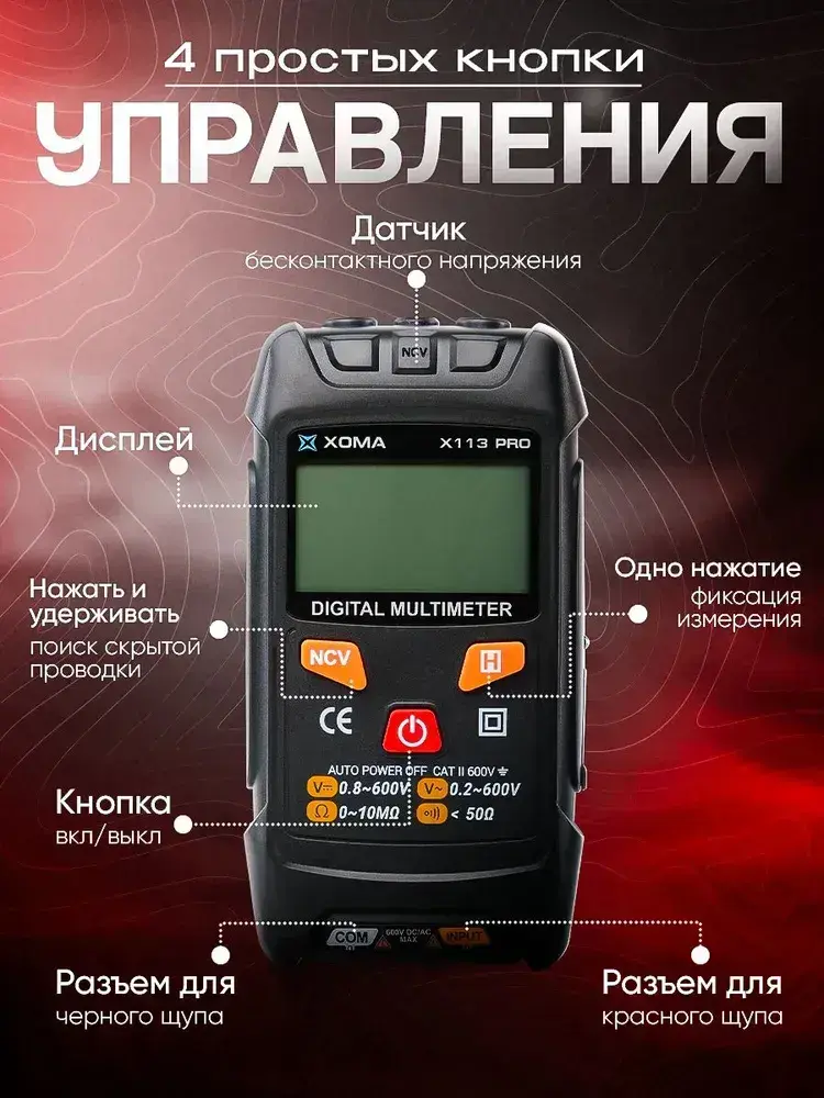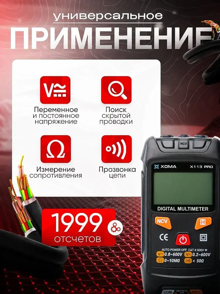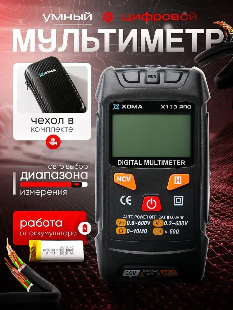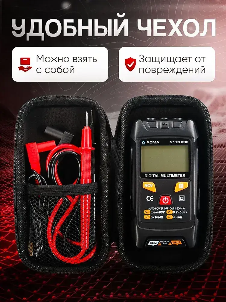 Мультиметр цифровой автоматический с щупами, чехлом и аккумулятором умный XOMA X113 PRO