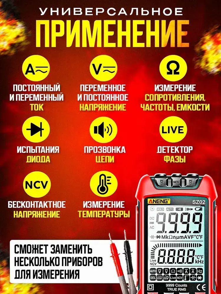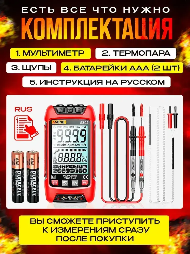 Мультиметр цифровой автоматический с щупами и термопарой умный Aneng