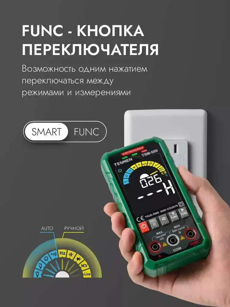 Мультиметр Цифровой автоматический TESMEN TSM-599 6000 отсчетов с защитным предохранителем, с измерением переменного и постоянного тока