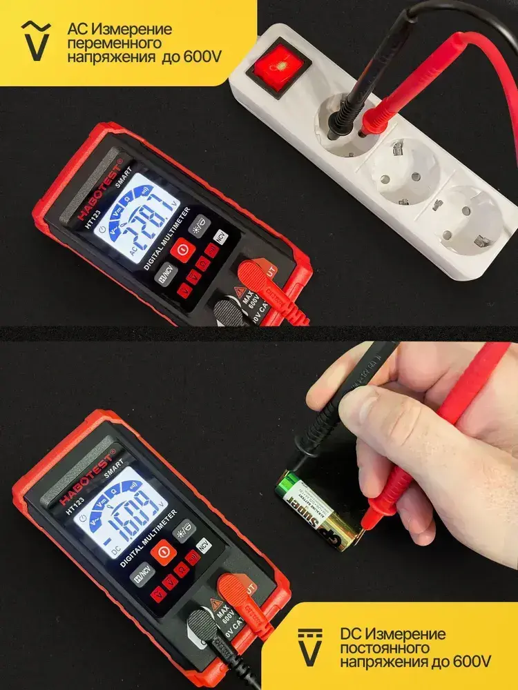 Мультиметр цифровой HABOTEST, 4000 отсчетов, вольтметр измерение напряжения переменного и постоянного тока с автодиапазоном (Инструкция на Русском Языке)