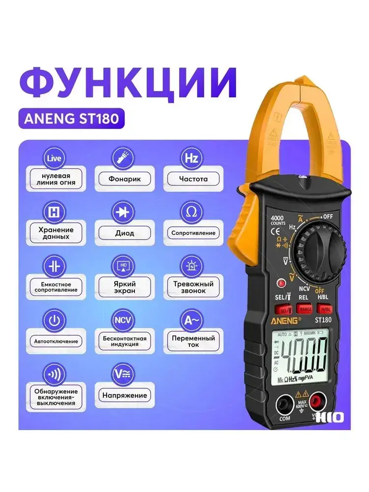 Мультиметр цифровой с прозвонкой автомобильный тестер электрический Токовые клещи