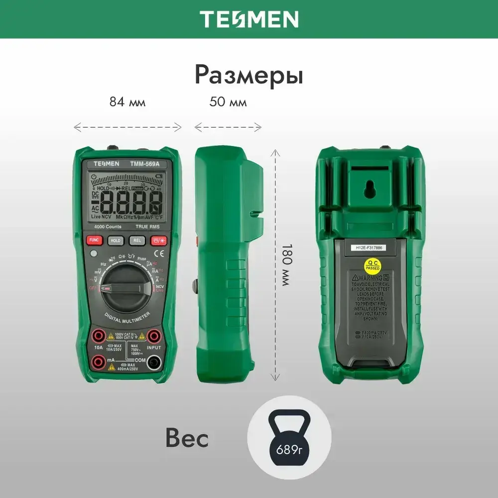 Мультиметр цифровой с прозвонкой TESMEN TMM-569A 4000 отсчетов 2 защитных предохранителя