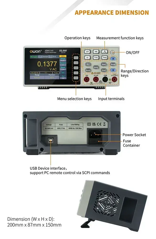 Mультиметр XDM1141 OWON настольный цветной LCD разрядность 55000