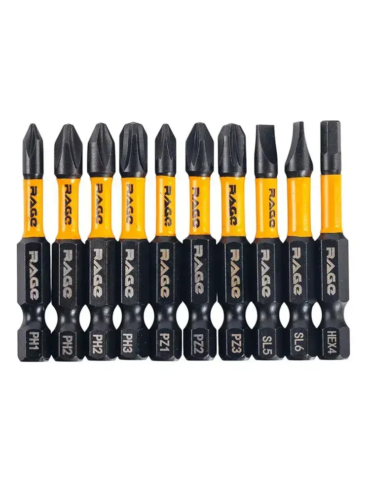 Набор бит торсионных IMPACT S2 PH PZ SL HEX x 50 мм 10 шт RAGE by VIRA
