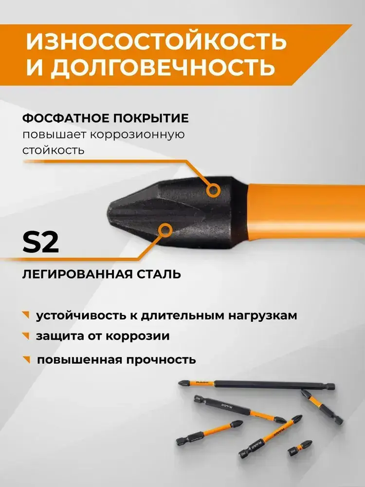 Набор бит торсионных IMPACT S2 PH2 х 25 мм 50 мм 65 мм 70 мм 90 мм 150 мм 6 шт RAGE