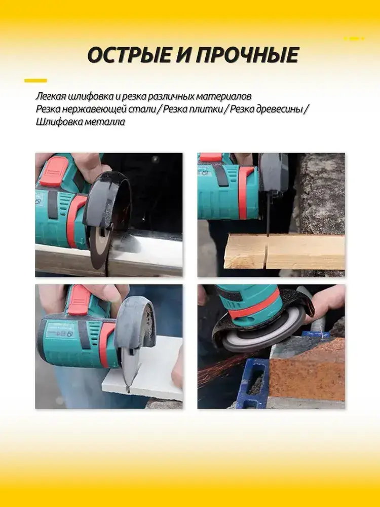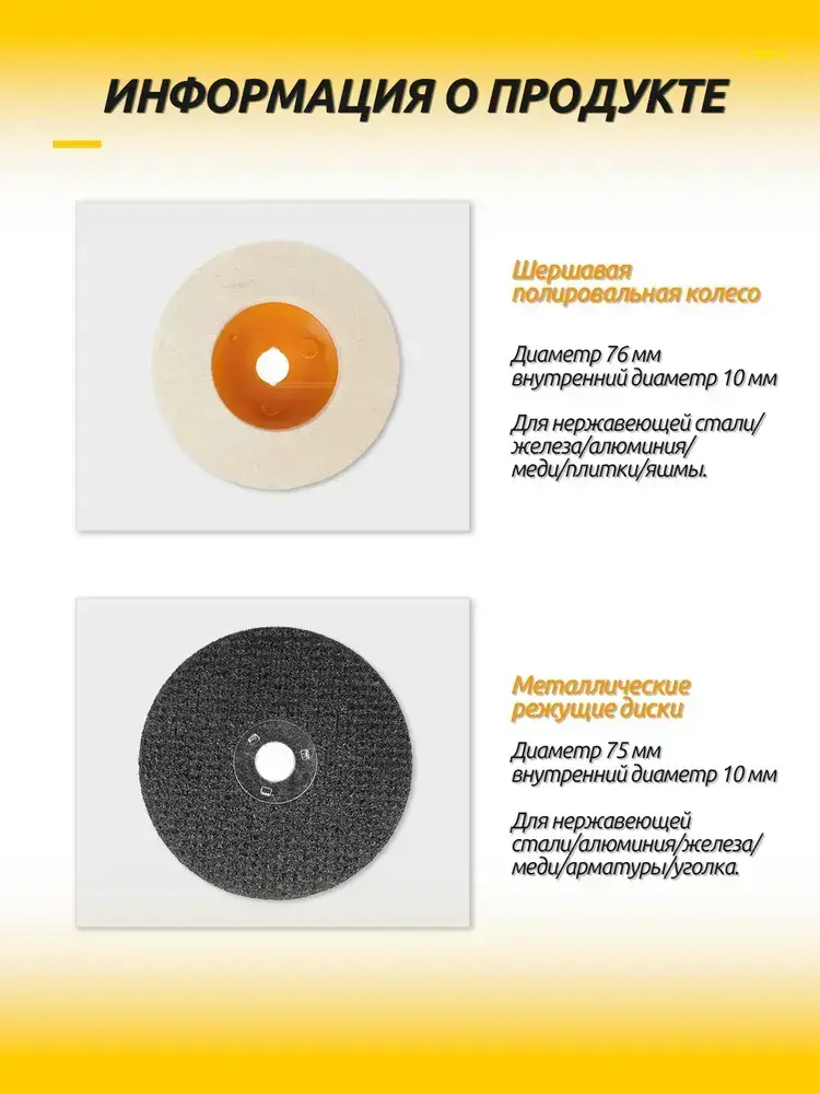 Набор дисков для мини УШМ, 15 шт. (75х10 мм) - отрезные, шлифовальные, пильные для дерева, металла, плитки и пластика.