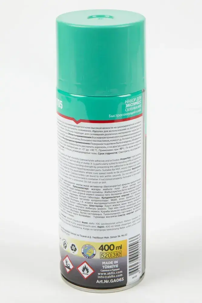 Набор для экспресс склеивания Akfix 705 (активатор 400 мл + клей 125 гр) двухкомпонентный для дерева, ткани, резины, кожи, обуви, пластика