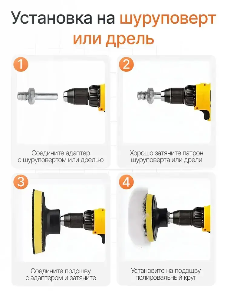 Набор для полировки фар автомобиля, полировальный круг 80 мм, насадка на шуруповерт