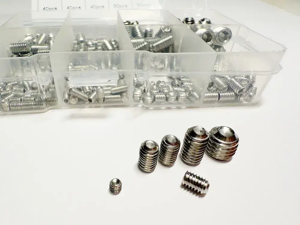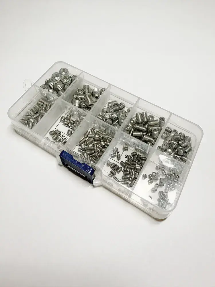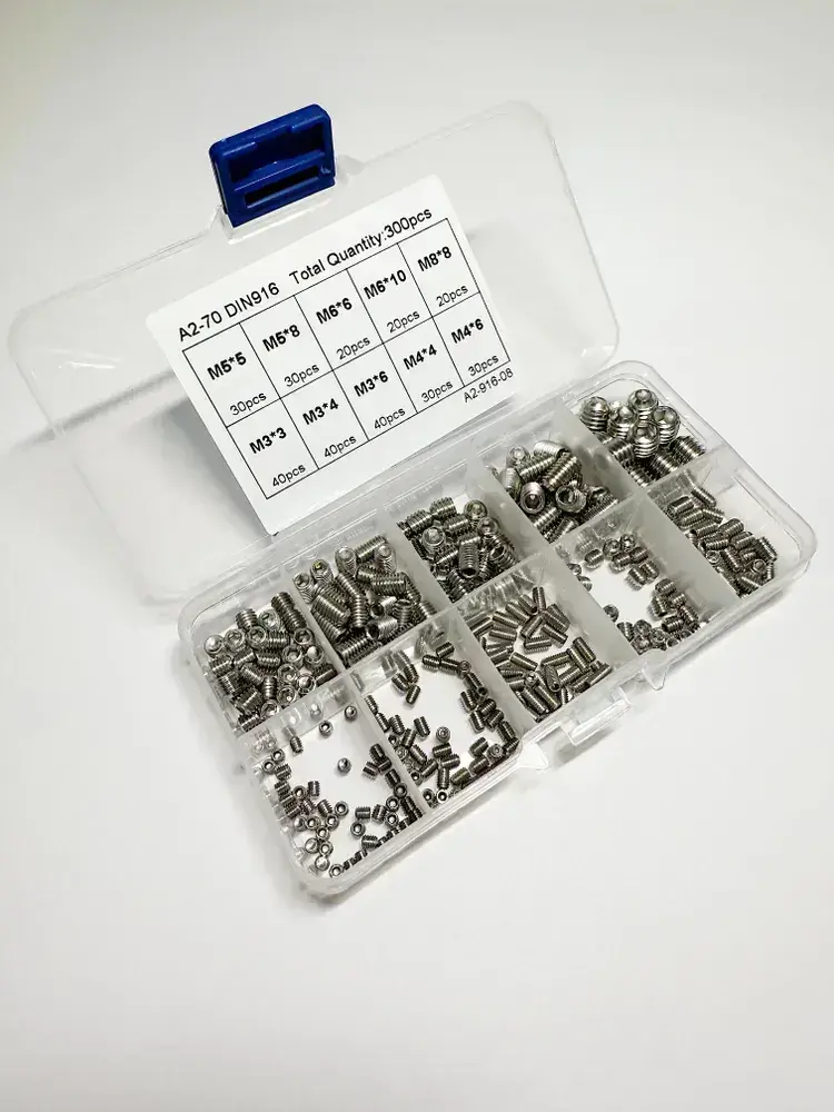 Набор гужонов M3 M4 M5 M6 M8 300 предметов в пластиковом кейсе. Винты без шляпки, винт без головки.
