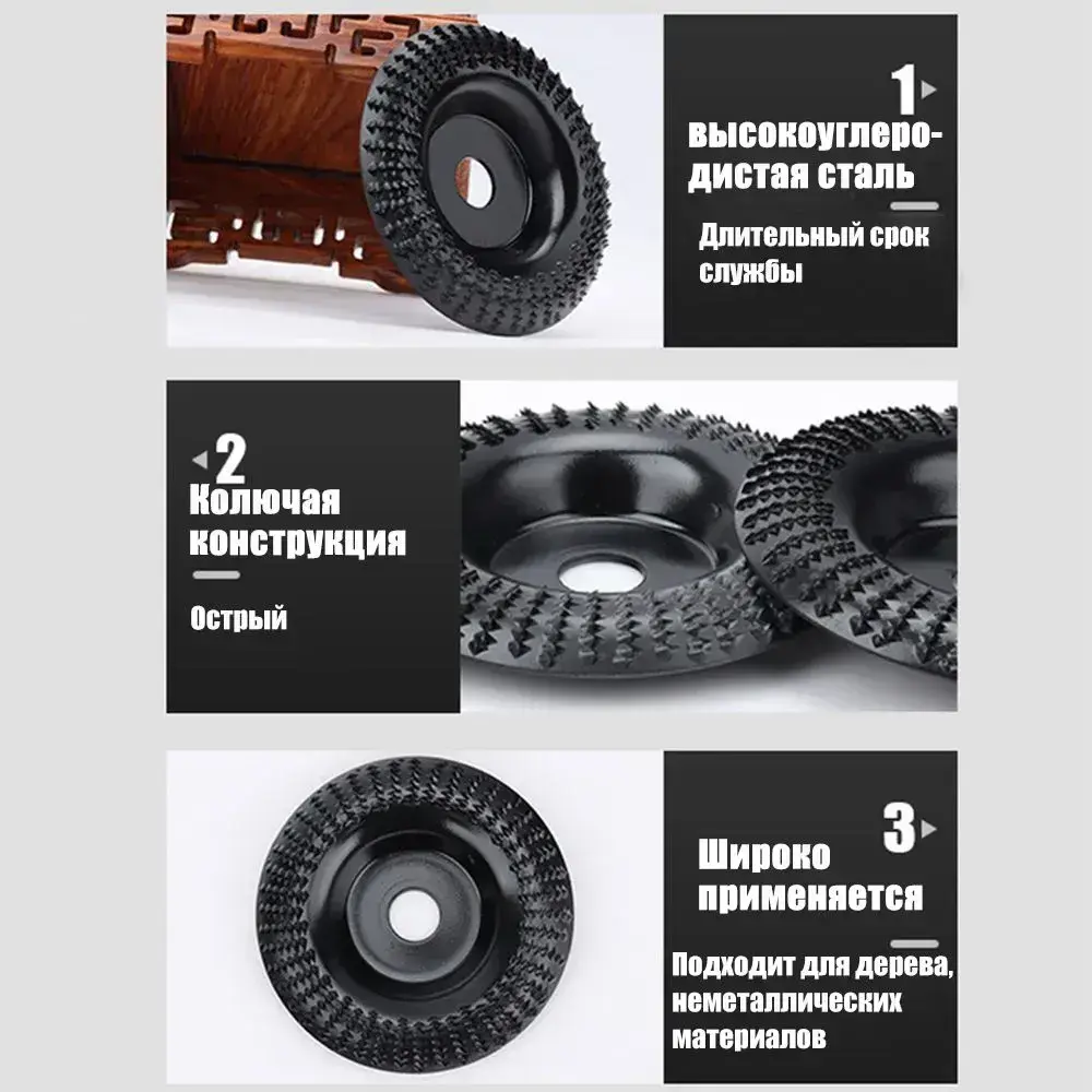 Набор из 2 дисков для резьбы по дереву, угловая шлифовальная машина 125мм с оправкой 22 мм, шлифовальный круг для резки дерева / Набор для полировки / Круг зачистной
