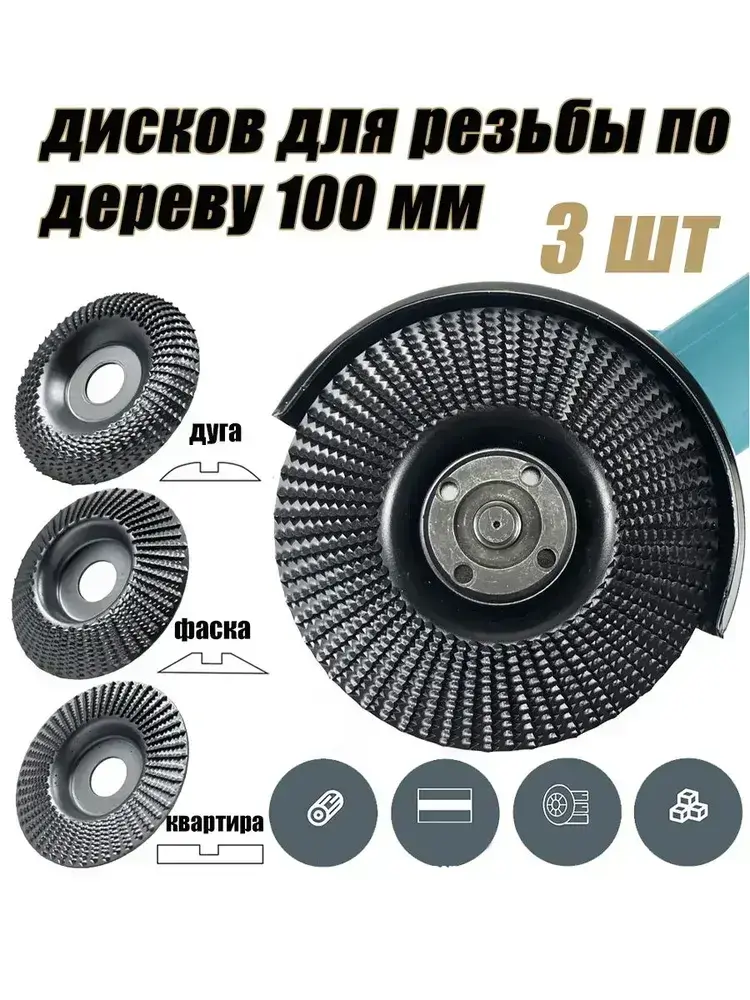 Набор из 3 дисков для резьбы по дереву, угловая шлифовальная машина 100мм, шлифовальный круг для резки дерева