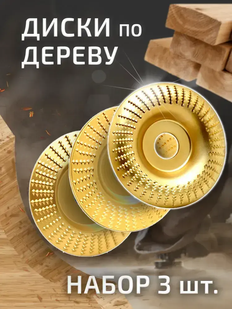 Набор из 3 дисков кругов обдирочных для резьбы по дереву под УШМ / болгарки 100мм с оправкой 22 мм