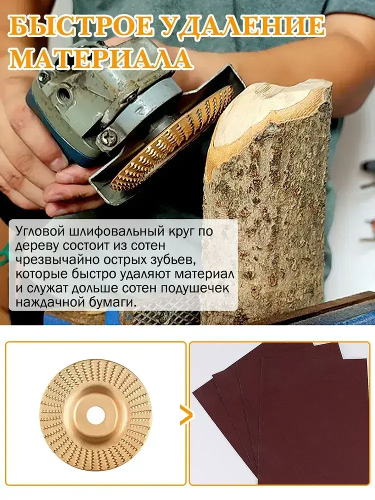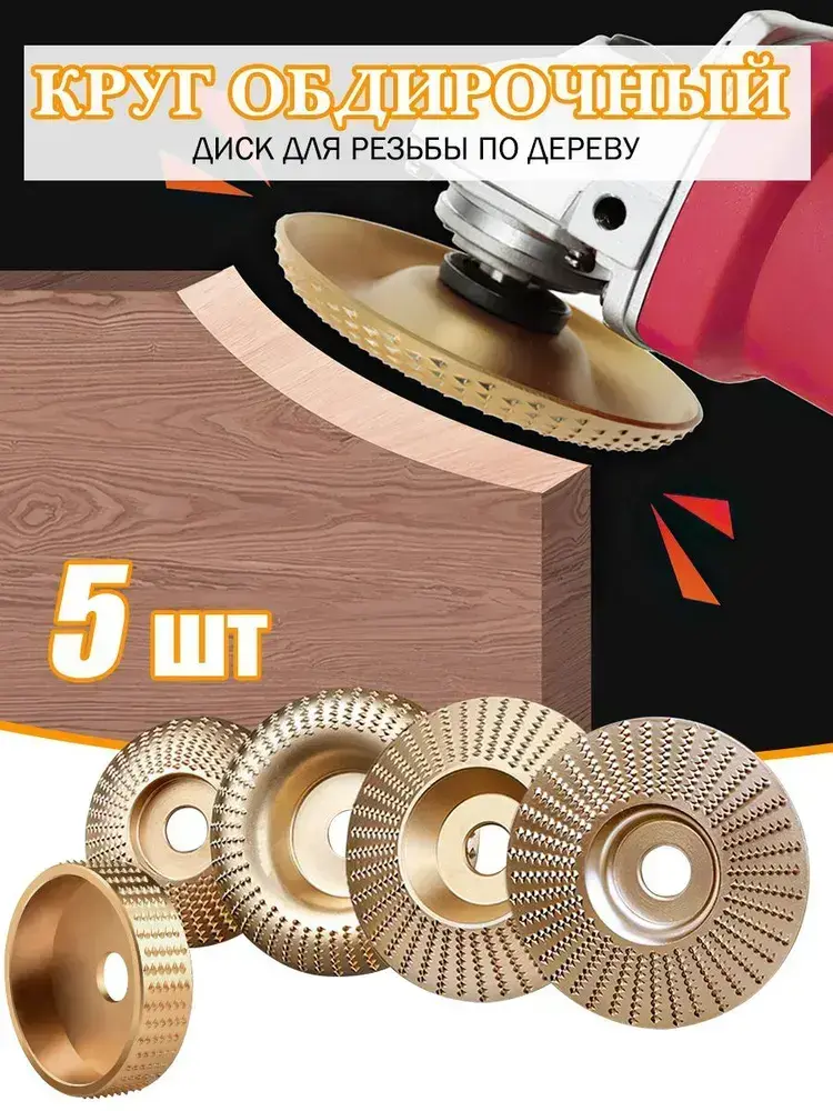 Набор из 5 дисков для резьбы по дереву, угловая шлифовальная машина 100мм с оправкой 22 мм, шлифовальный круг для резки дерева/Круг обдирочный