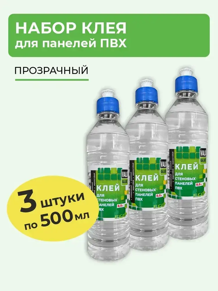 Набор клея прозрачный VALO GLUE для стеновых панелей ПВХ и ПЭТ , универсальный, 500 мл/3 штуки