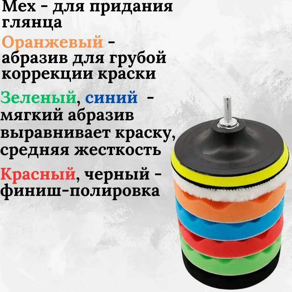 Набор Круги полировальные на липучке для полировки кузова авто и фар 180 мм