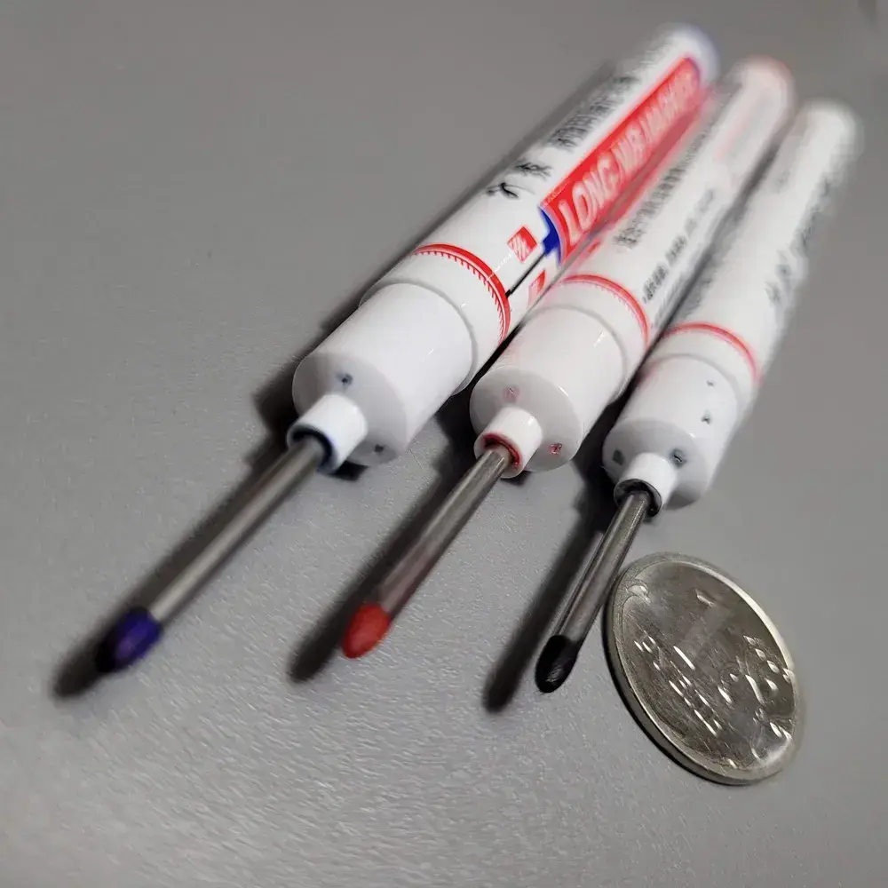 Набор маркеров перманентных с тонким стержнем QBuy, строительный маркер с длинным наконечником, для разметки. черный, синий, красный. 3шт.