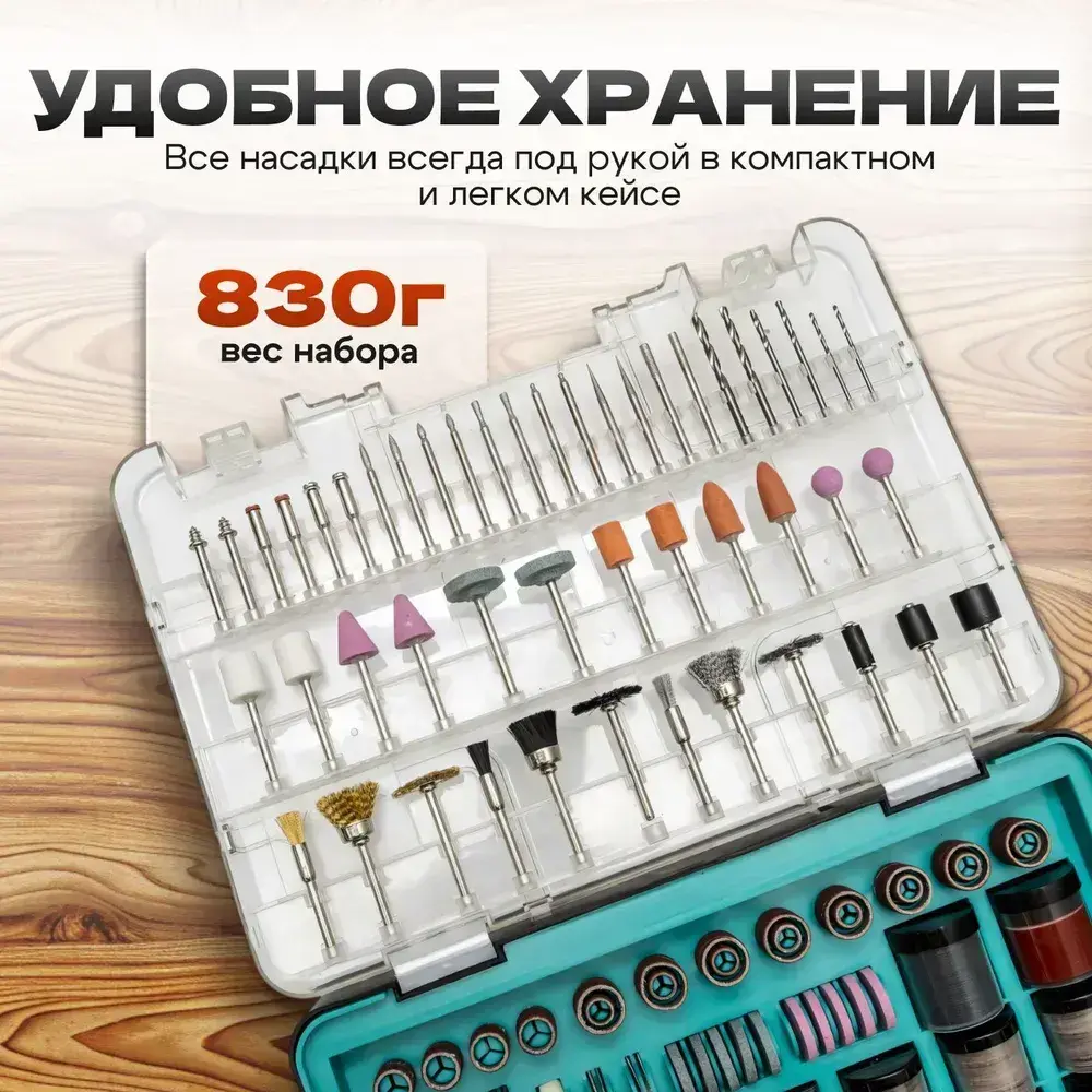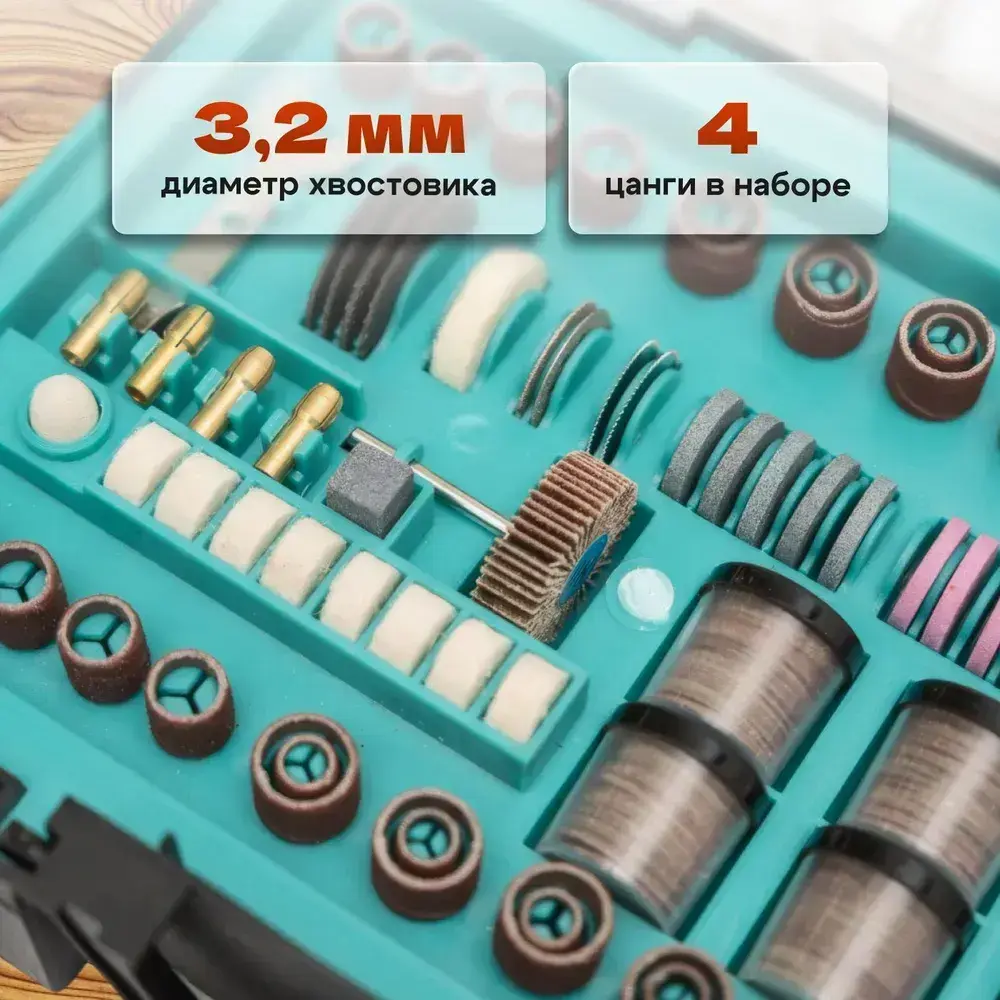 Набор насадок для граверов и бормашин Hitman, 3.2 мм, 420 предметов в кейсе
