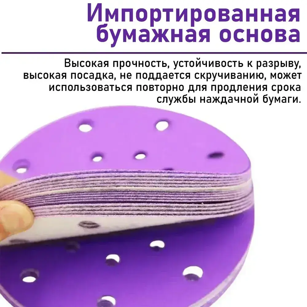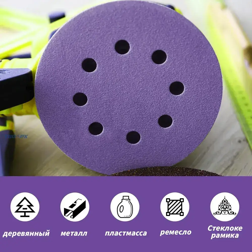Набор наждачных шлифовальных кругов 125мм на липучке 50 шт набор / Диски шлифовальные микс Р180,P240,P320,P400,P600
