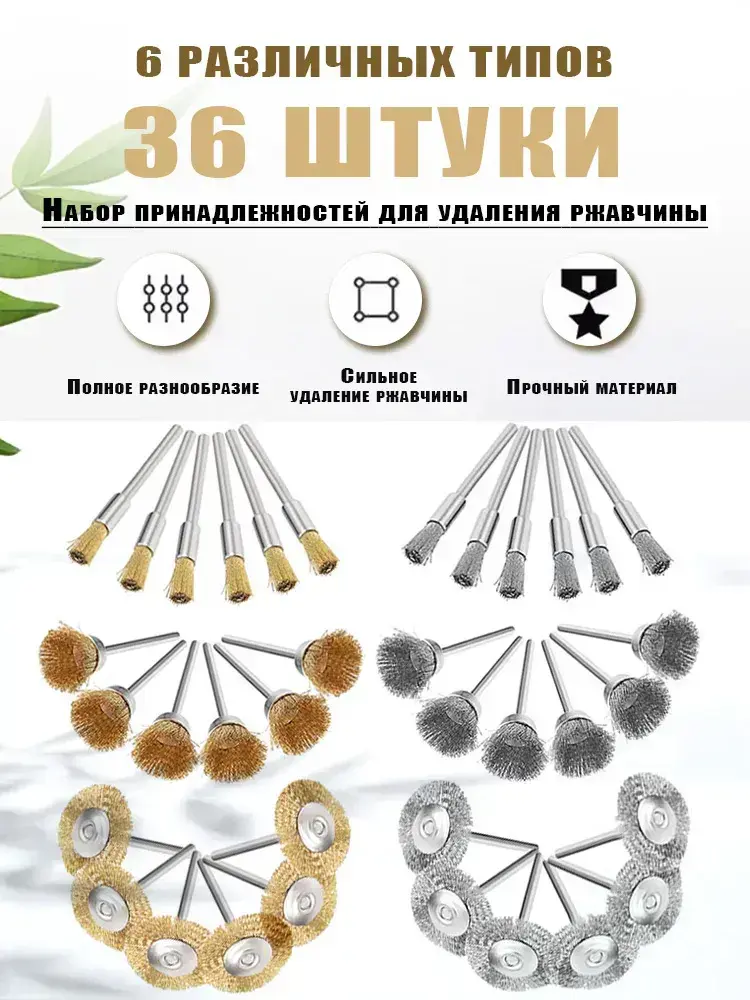 Набор щеток-крацовок для дрели и шуруповёрта,36 шт.Корщётка металлическая для удаления ржавчины/используется для полировки металлических поверхностей.