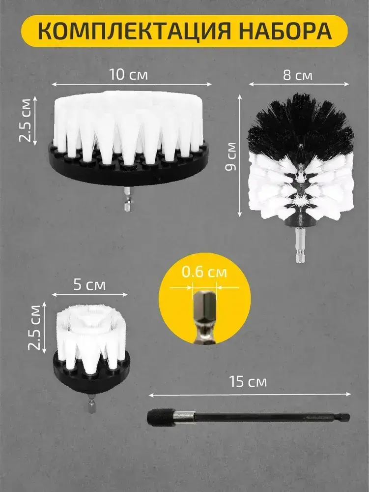 Набор щеток насадок на дрель, щетки для шуруповерта, для быстрой чистки и мойки поверхностей, 4 предмета, белый