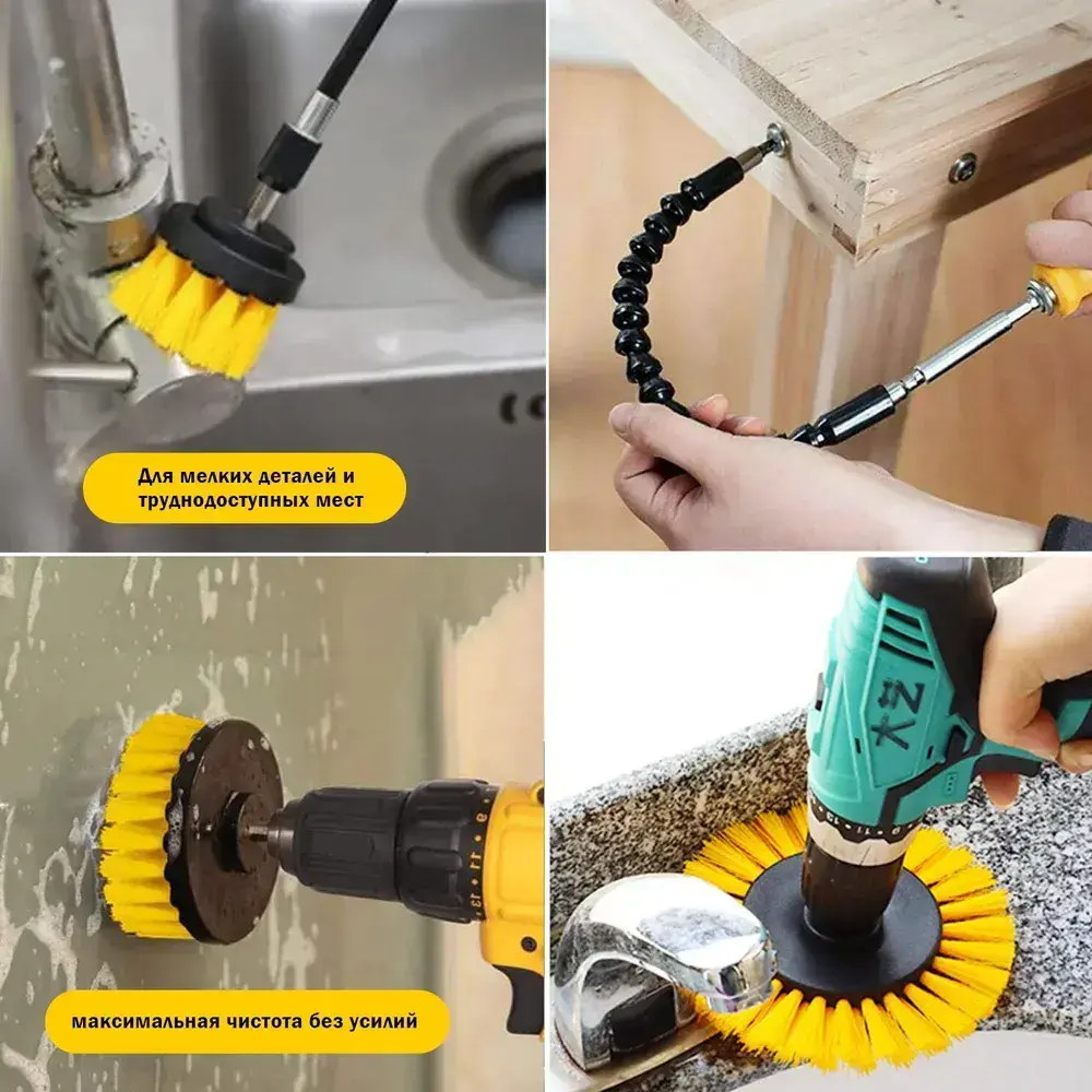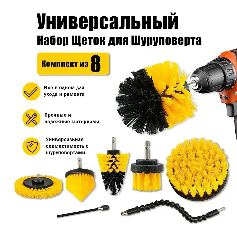 Набор щеток насадок на дрель, щетки для шуруповерта, для быстрой чистки и мойки поверхностей, детейлинг для авто, 8 предметов, средняя жесткость