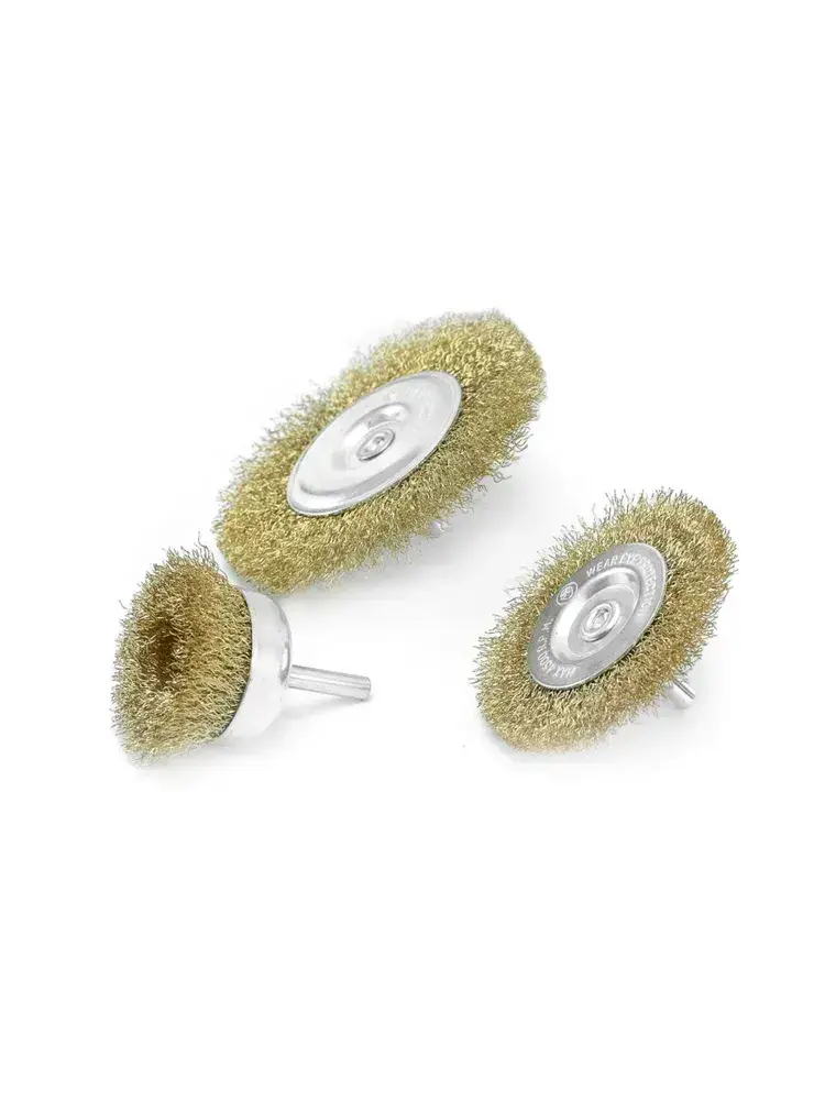 Набор щёток со шпильками из 6 предметов: плоские 40,50,65,75,100мм и чашка 50 мм, латунированных,Pobedit