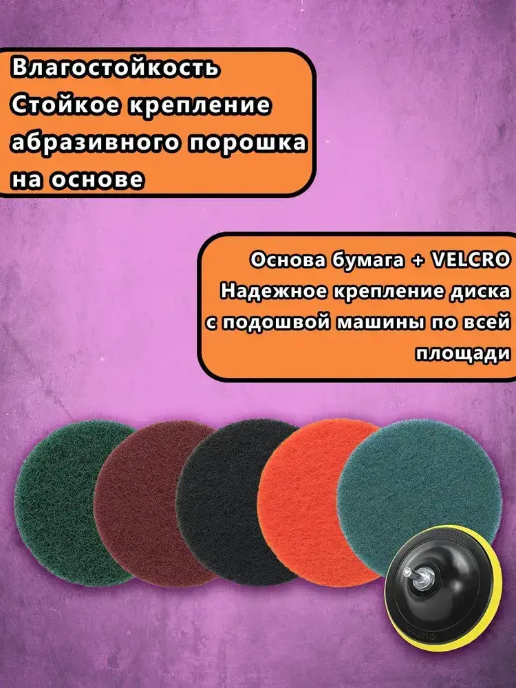 набор шлифовальных кругов 125 на липучке - синий Р3000 Оранжевый P1500 тёмно-серый Р800 красный Р320 зелёный Р240 по 1 шт.Подарок - 2 штуки адаптеров.