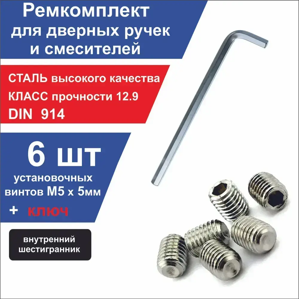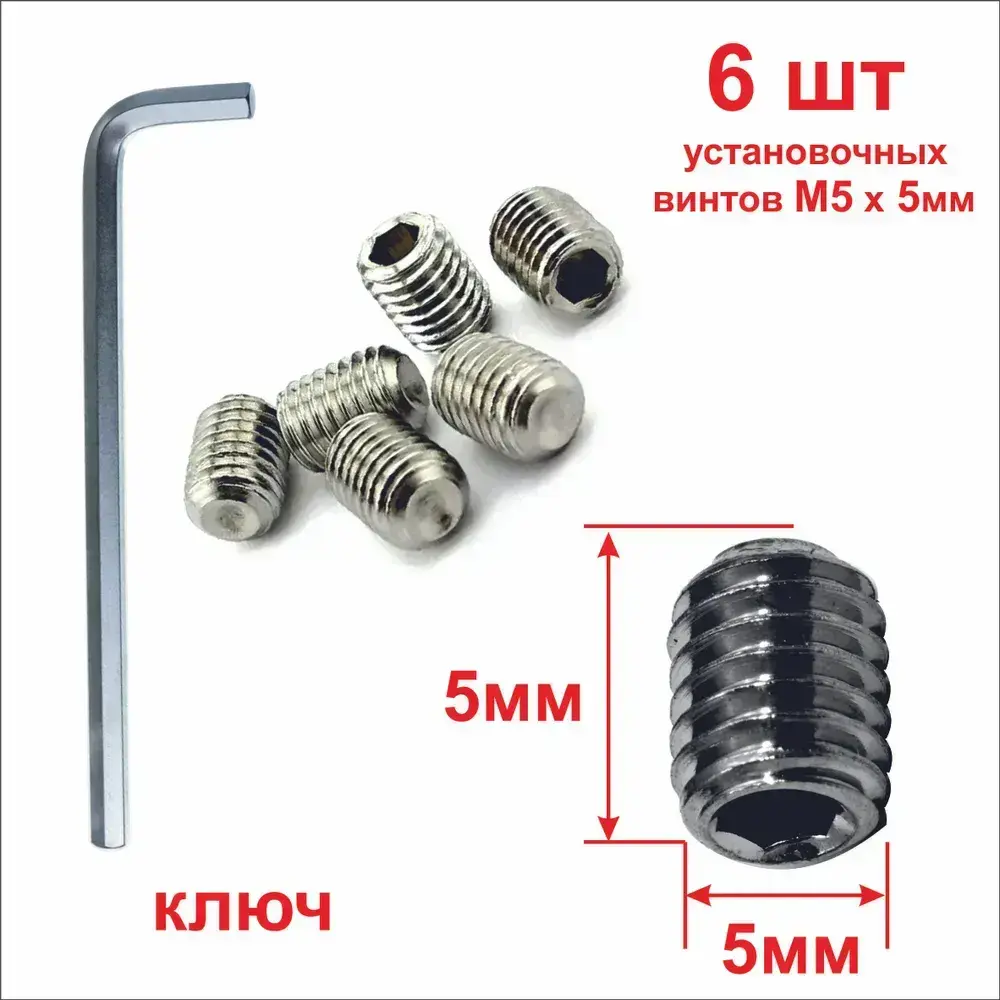 Набор стопорных винтов М5х5мм. Ремкомплект для дверных ручек ,смесителей, иглодержатель оверлока, рейлинг кухонный, наконечник карниза для штор, держатель полотенцесушителя, держатель проводов усилителя, бридж гитары, для планки вивера, для целика. +1ключ