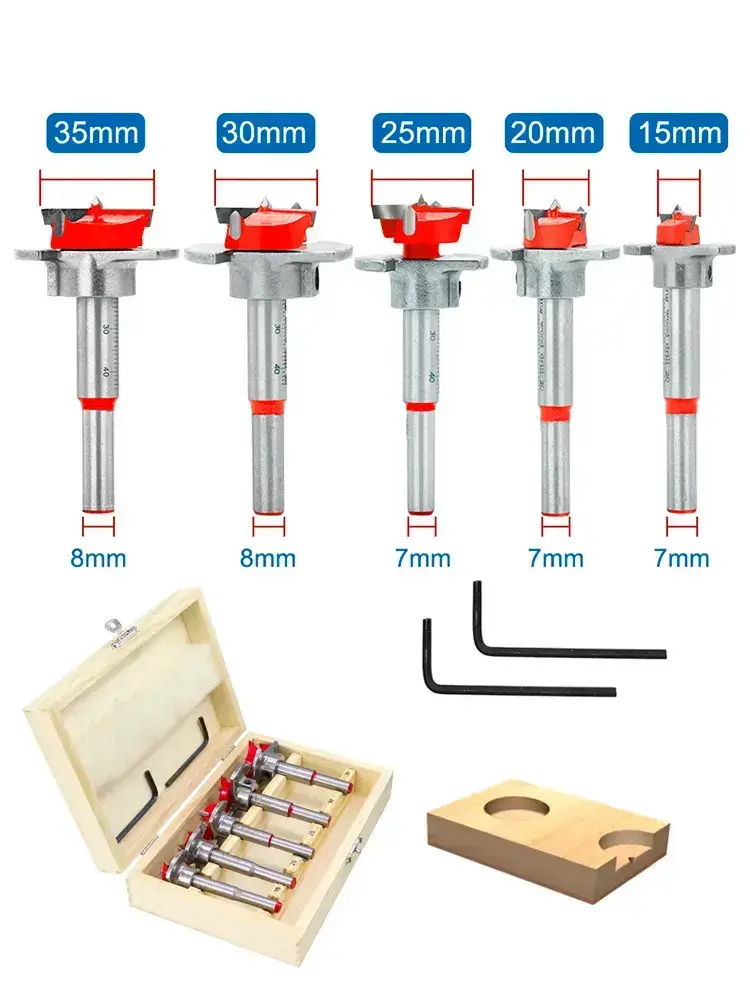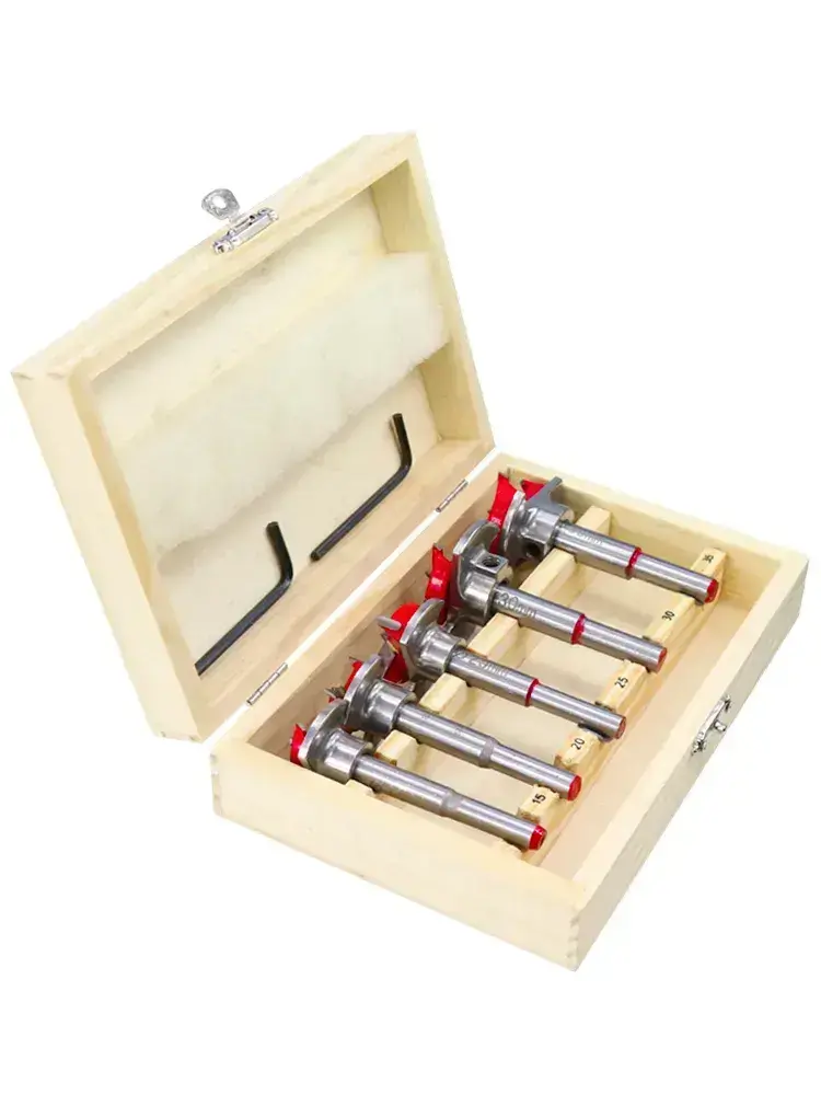 Набор сверл Форстнера по дереву , 15, 20, 25, 30, 35 мм, с ограничителем, 5шт.