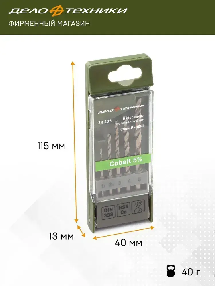 Набор сверл по металлу Cobalt 5% (d1.5 - 5 мм), 5 шт., Дело Техники, 211205