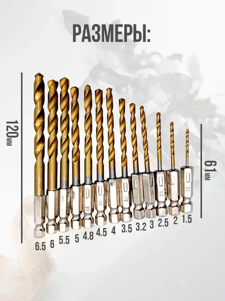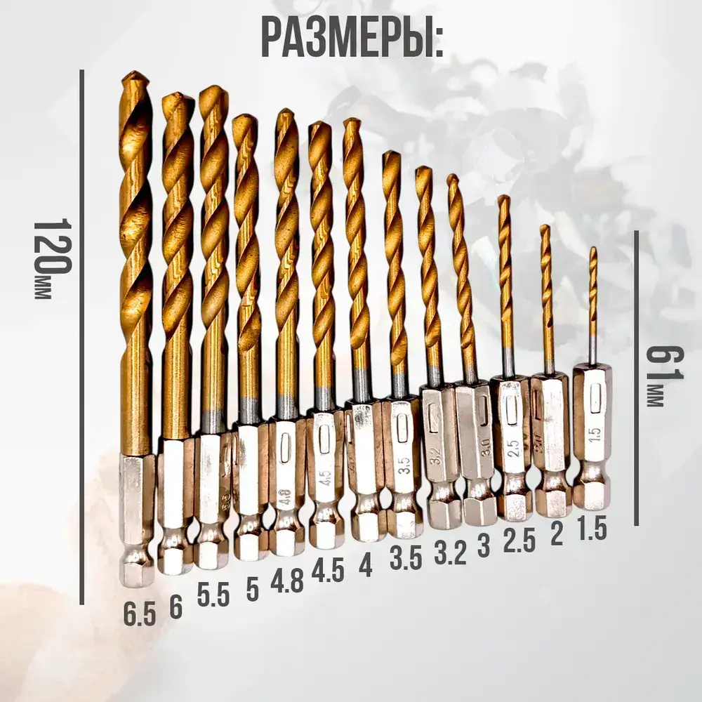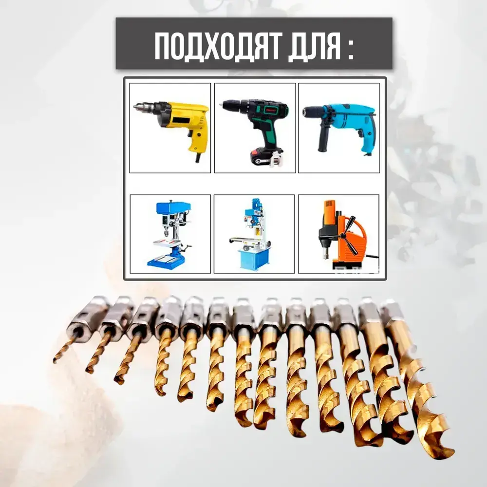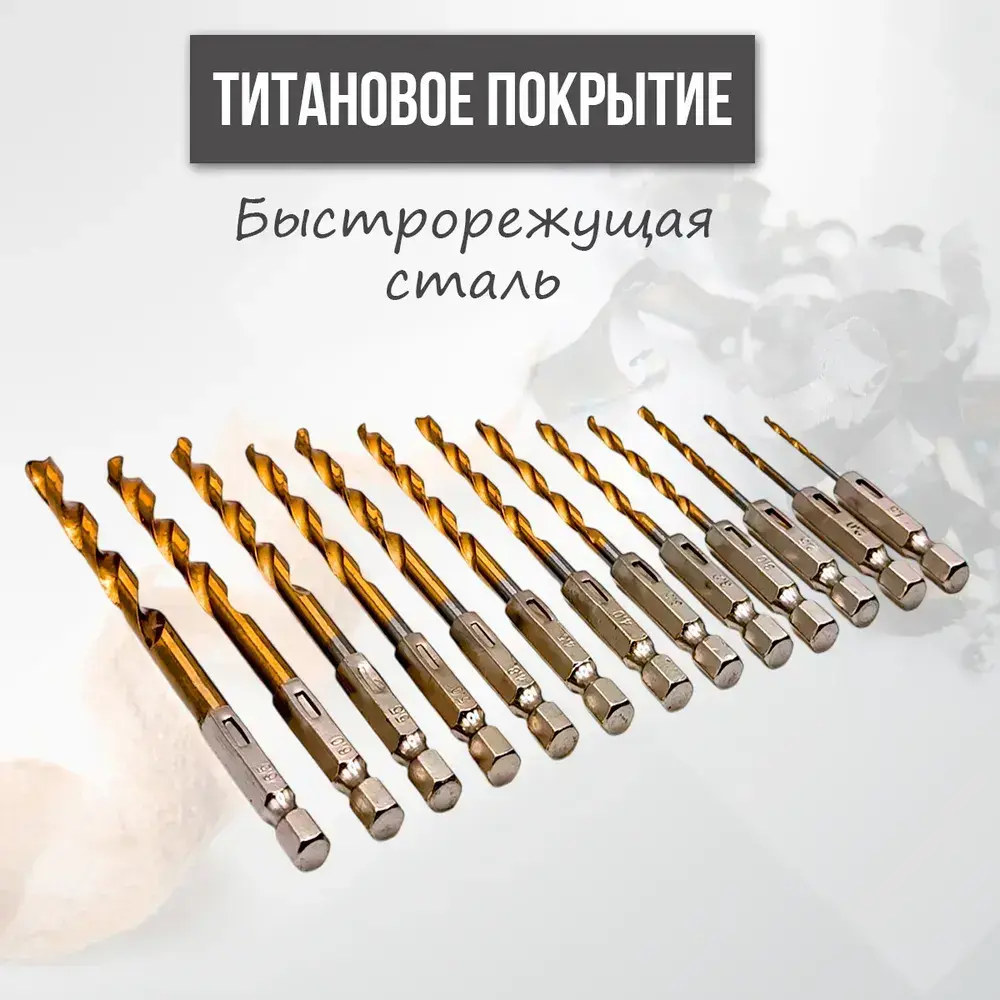 Набор сверл по металлу с титановым покрытием, 13 шт