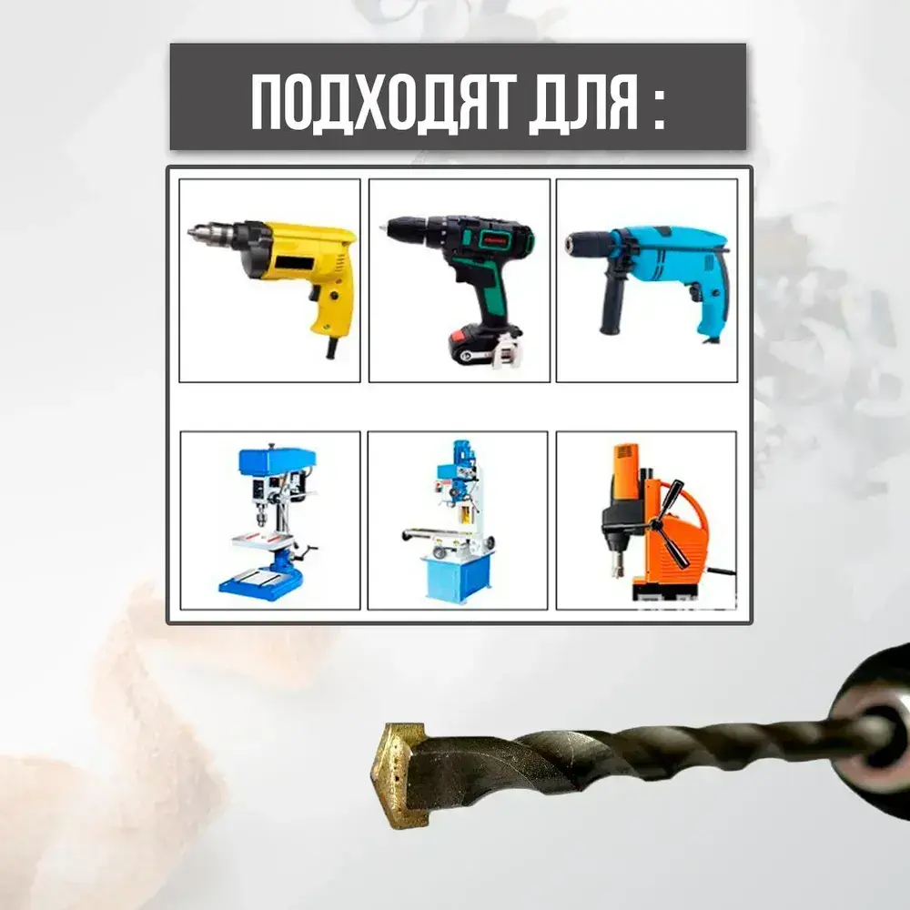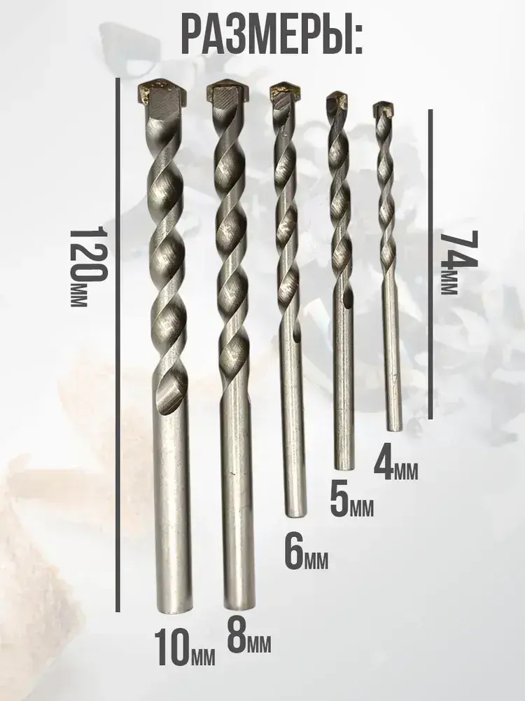 Набор сверл ударных по бетону и кирпичу, диаметр 4, 5, 6, 8, 10 мм, 5шт