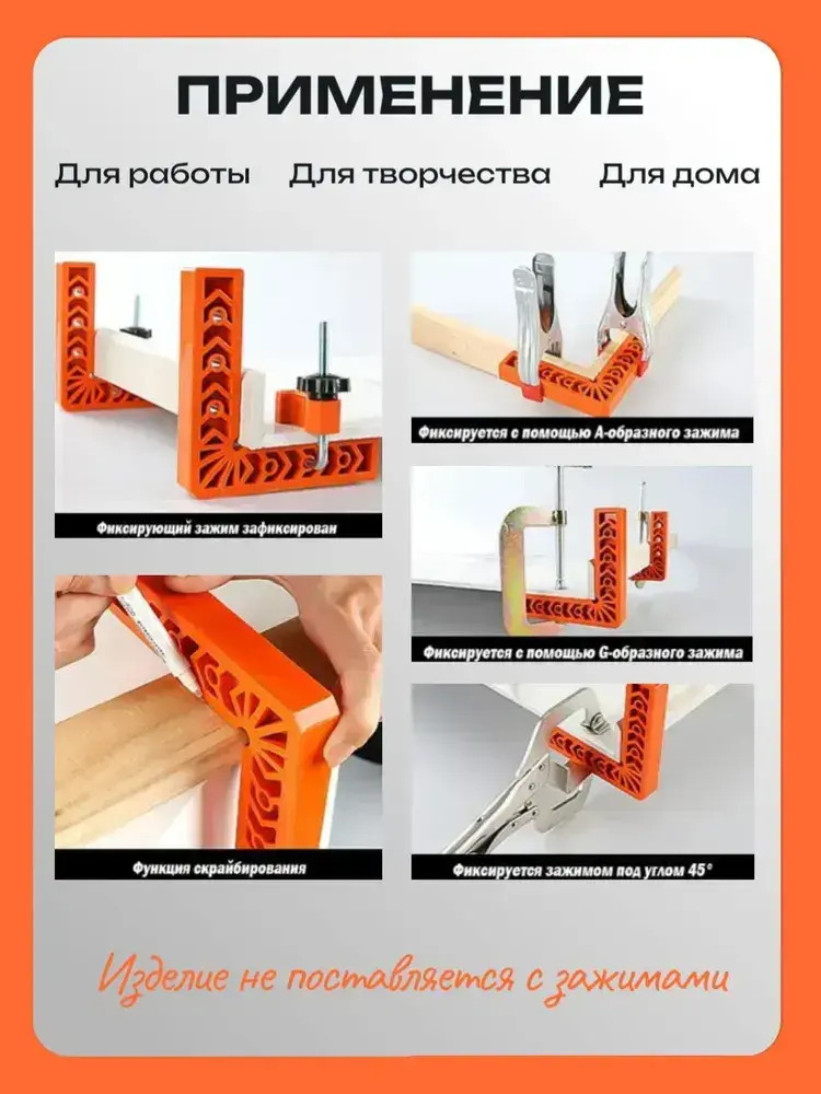 Набор угольников пластиковых 4 шт. 80х50 мм / Уголок столярный строительный