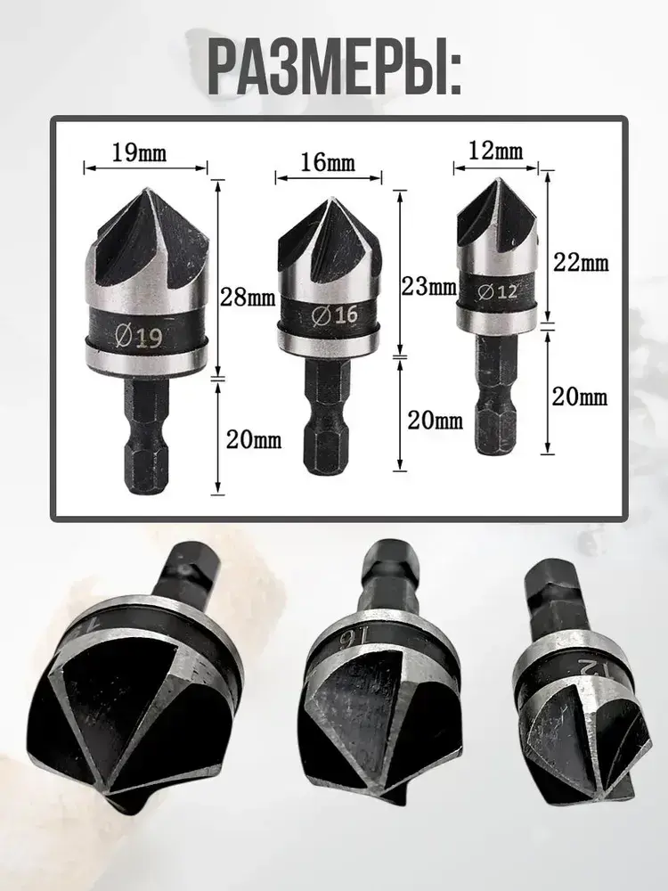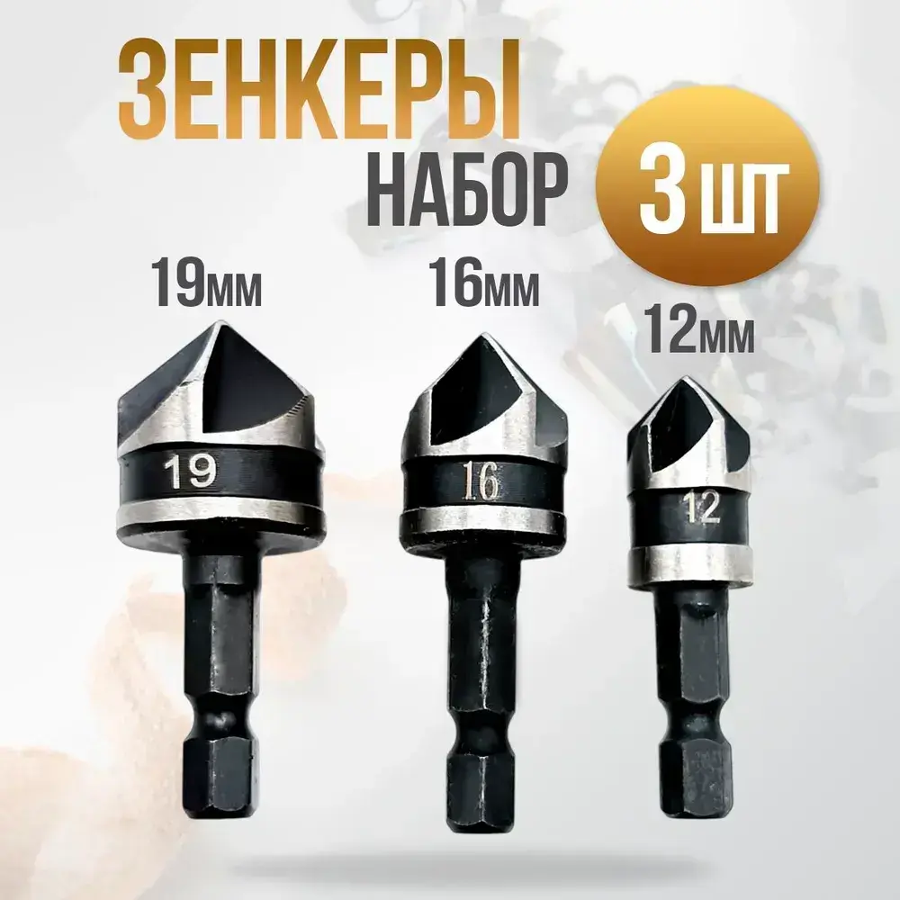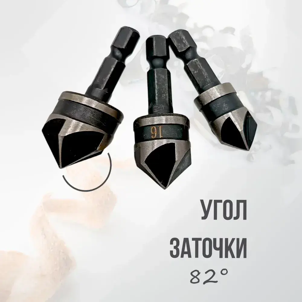 Набор зенкеров по дереву 3в1 12, 16 и 19мм , в наборе 3шт
