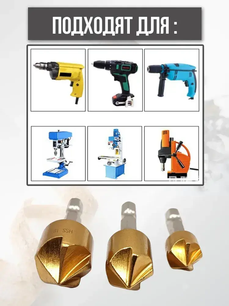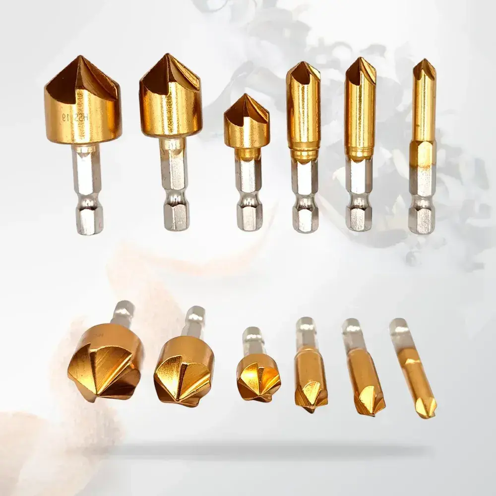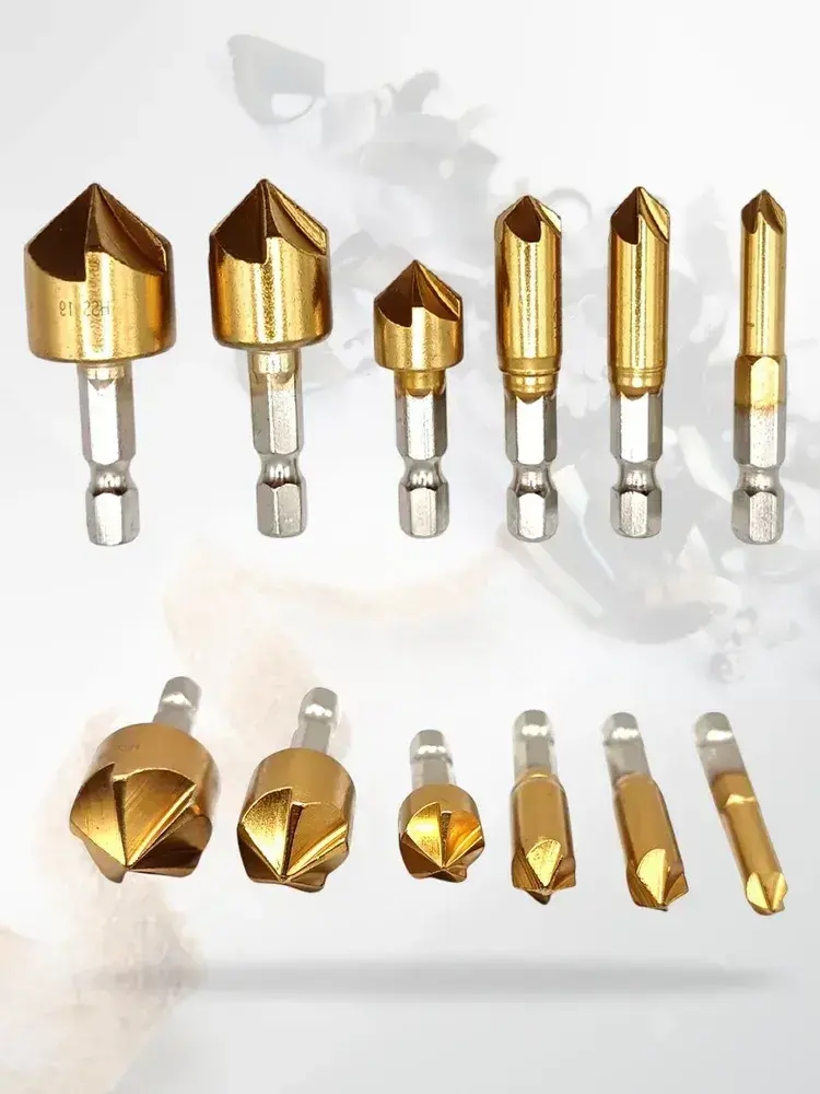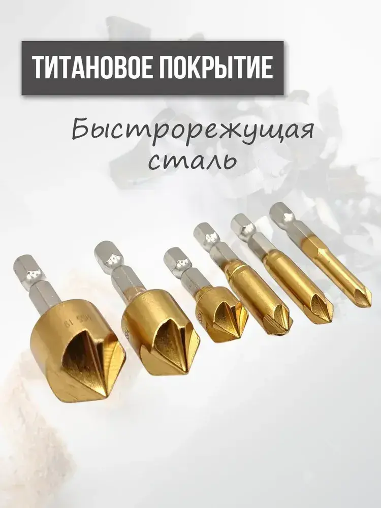 Набор зенкеров по металлу и дереву 6, 8, 9, 12, 16 и 19мм с титановым покрытием, в наборе 6шт