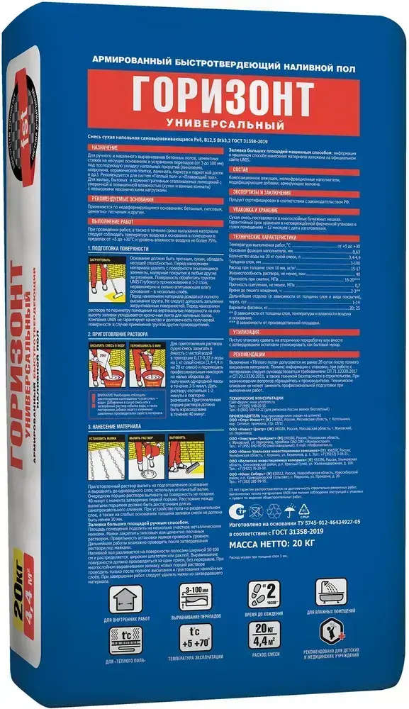 Наливной пол Unis Горизонт универсальный быстротвердеющий 20 кг