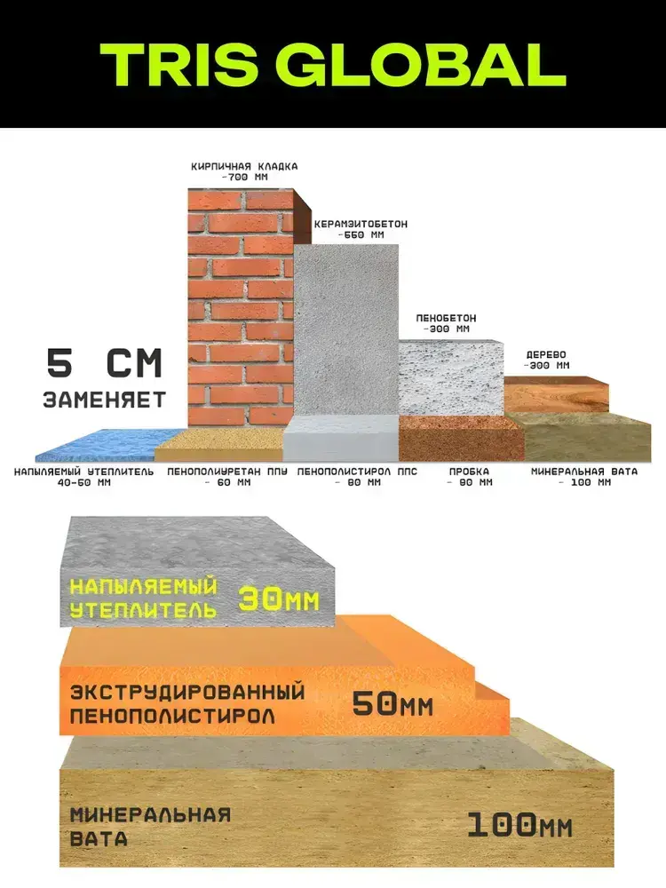 Напыляемая теплоизоляция TRIS GLOBAL 1000 мл., с распылительной насадкой для пистолета
