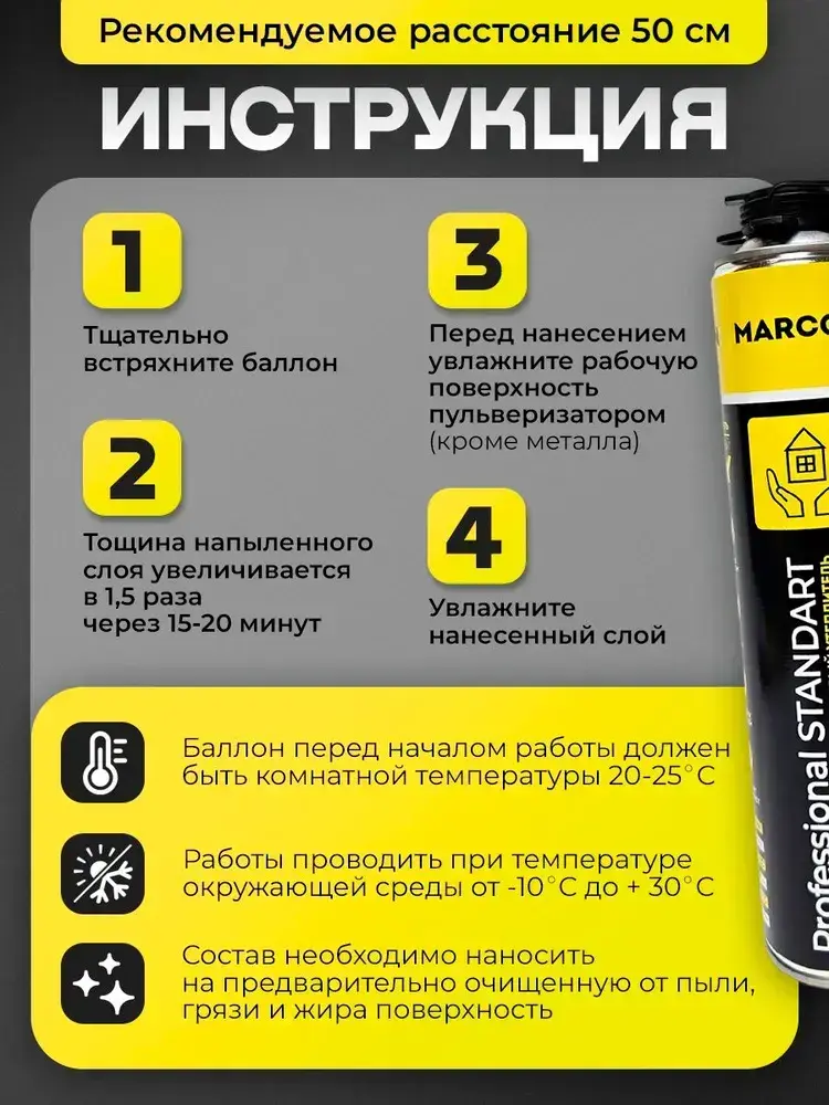 Напыляемый полиуретановый утеплитель MARCON Professional STANDART 10 штук 20 м2 + пистолет + очиститель + потолочная насадка