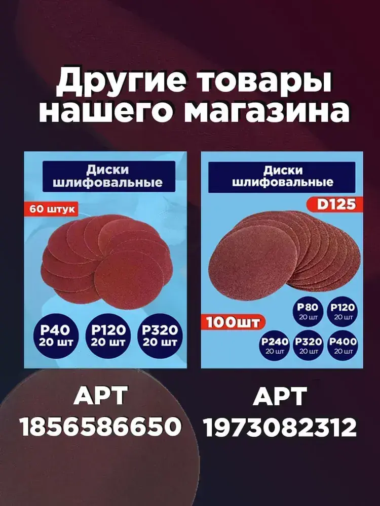 Насадка на УШМ шлифовальная 125 мм / Тарелка опорная для ушм / Шлифовальные круги 125 мм на липучке 30 шт