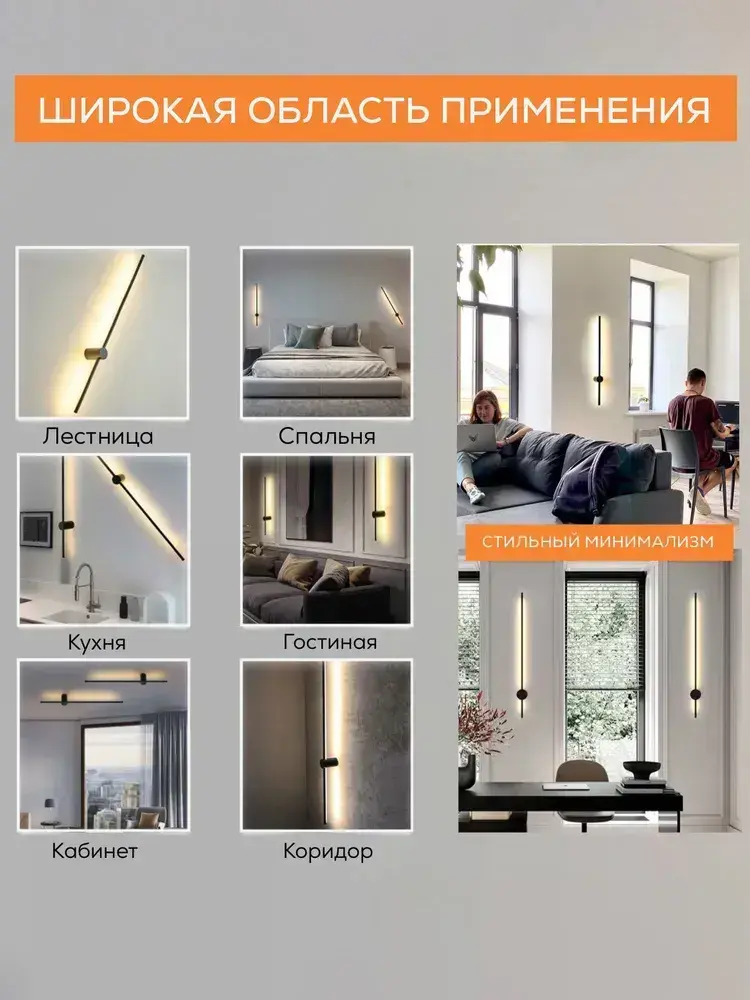 Настенный светильник светодиодный OutFrame 80см Черный S16 4000K, нейтральный свет, 14W".