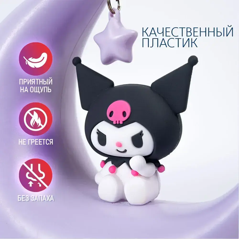 Ночник Куроми на луне, светильник настольный. Лампа детская Kuromi (Hello Kitty), 3 уровня яркости. Размер 13.5х11.5 см.