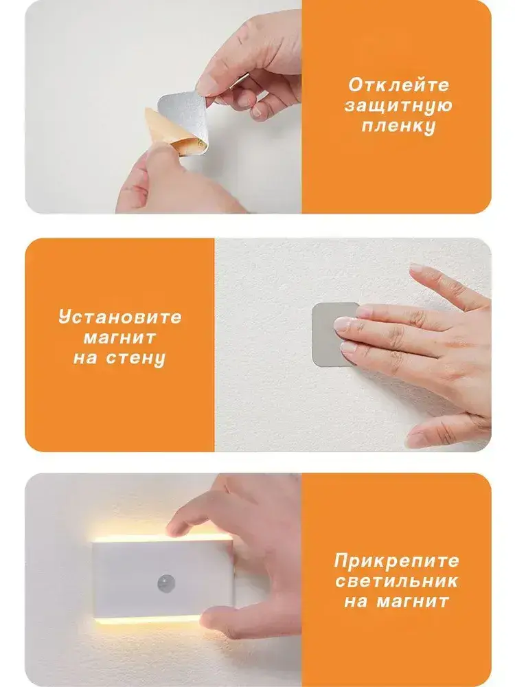 Ночник с датчиком движения, беспроводной светильник на магните, светодиодный