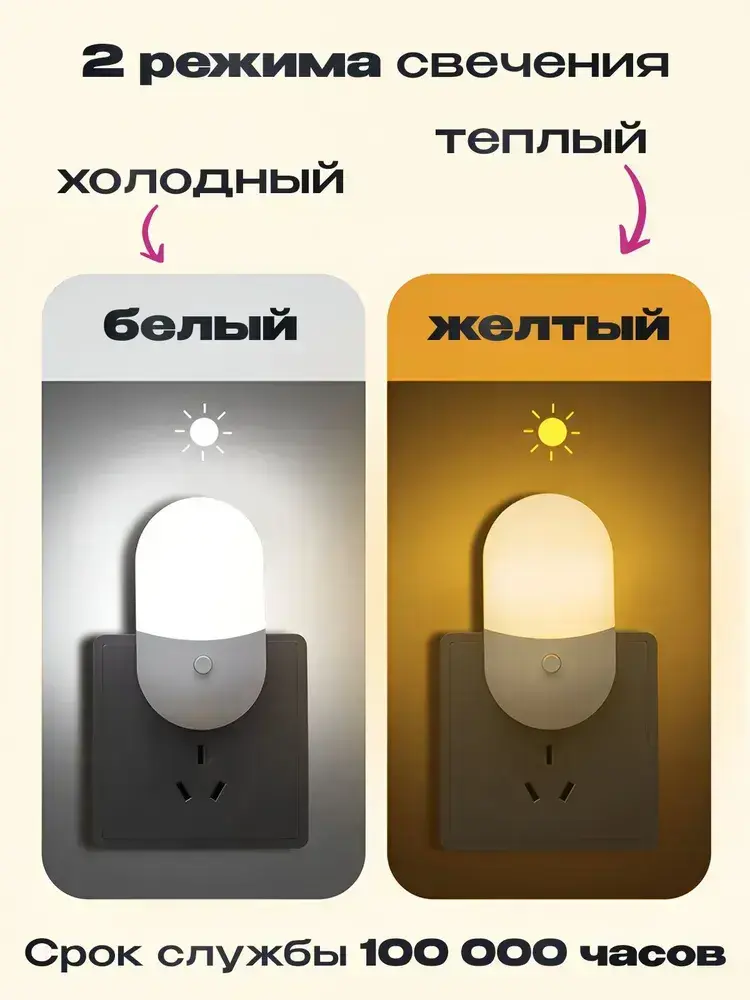 Ночник в розетку, ночник для новорожденных. Холодный и теплый свет