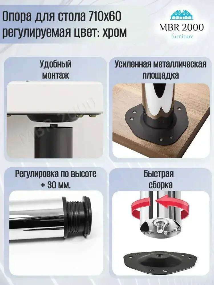 Ножки для стола, опоры мебельные, 710 мм Хром