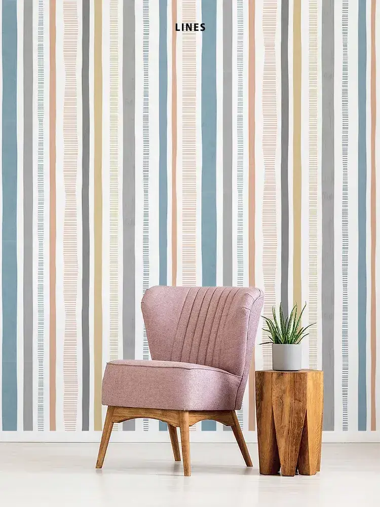Обои флизелиновые, полоса серо-голубая, метровые, для спальни, для коридора, Lines