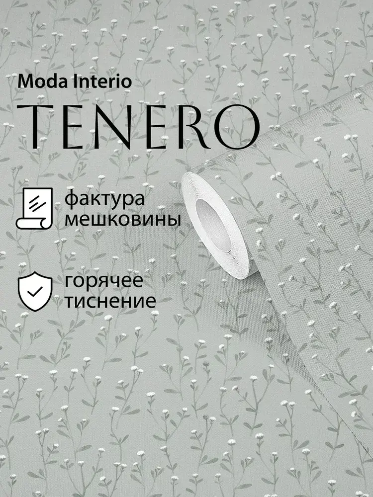 Обои флизелиновые, веточка на зеленом фоне, метровые, для спальни, Tenero (Moda interio, арт.32688-56)