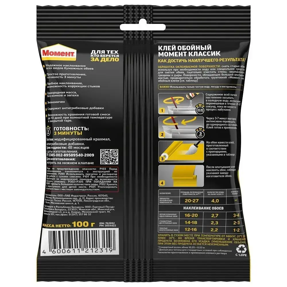 Обойный клей Момент Классик для бумажных обоев 100 г